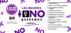 El lema de USO para el 8 de marzo, “Las mujeres no queremos”, para luchar frente a las desigualdades aún existentes entre mujeres y hombres