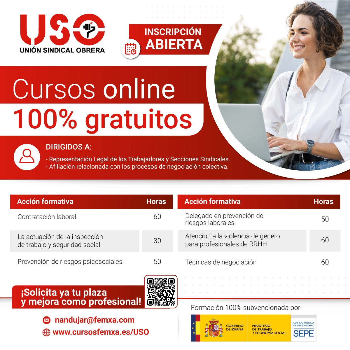 USO oferta un programa de formación de calidad, riguroso y ejemplar dirigido a trabajadores en activo y desempleados, y que abarca sectores como transporte aéreo, comercio y servicios, entre otros, atendiendo a las necesidades formativas del nuevo mercado de trabajo.