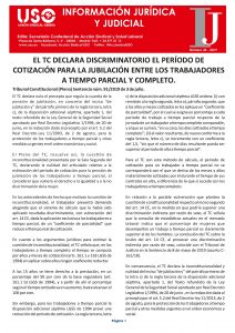 - Sentencia del Tribunal Constitucional que declara discriminatorio el período de cotización para la jubilación entre los trabajadores a tiempo parcial y completo.