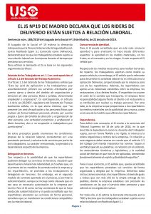 - El TSJ de Madrid declara que hay relación laboral entre los riders de Deliveroo y la empresa.