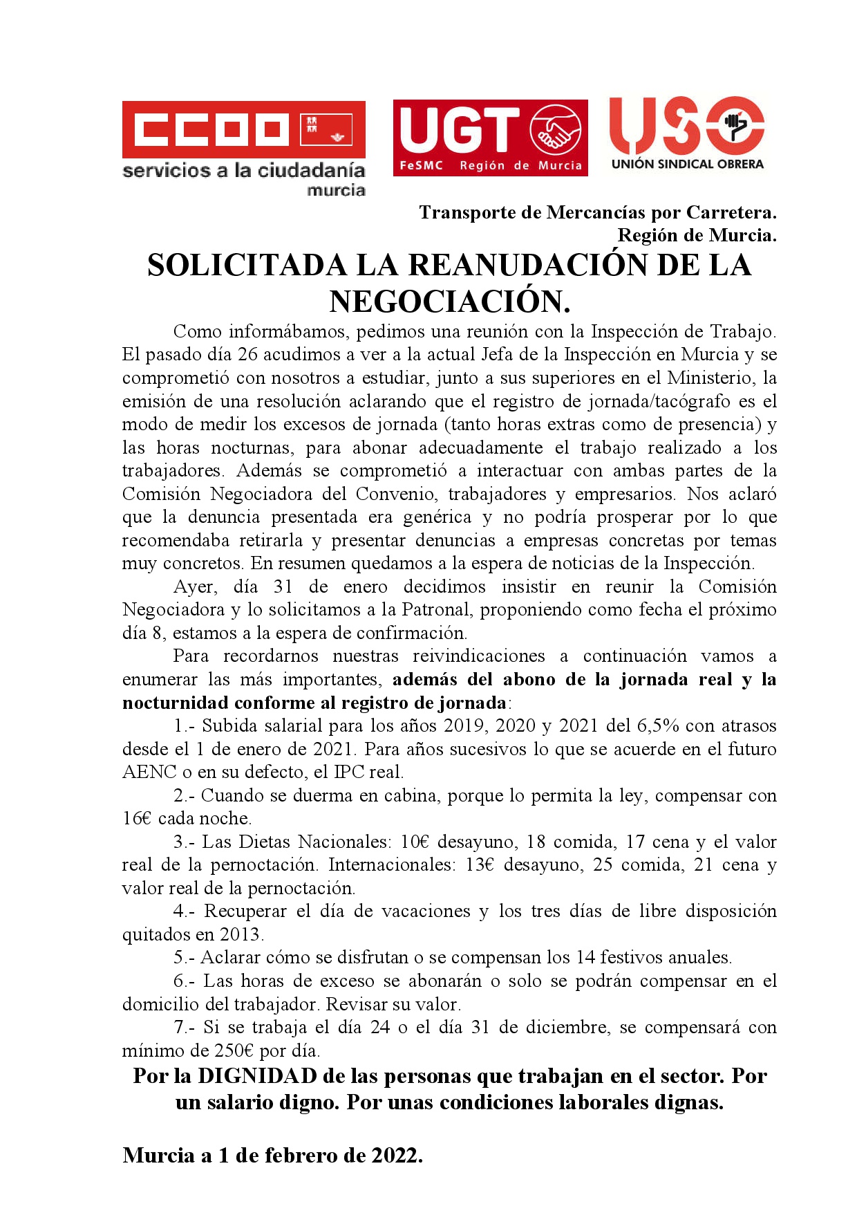 Ayer, día 31 de enero decidimos insistir en reunir la Comisión Negociadora y lo solicitamos a la Patronal, proponiendo como fecha el próximo