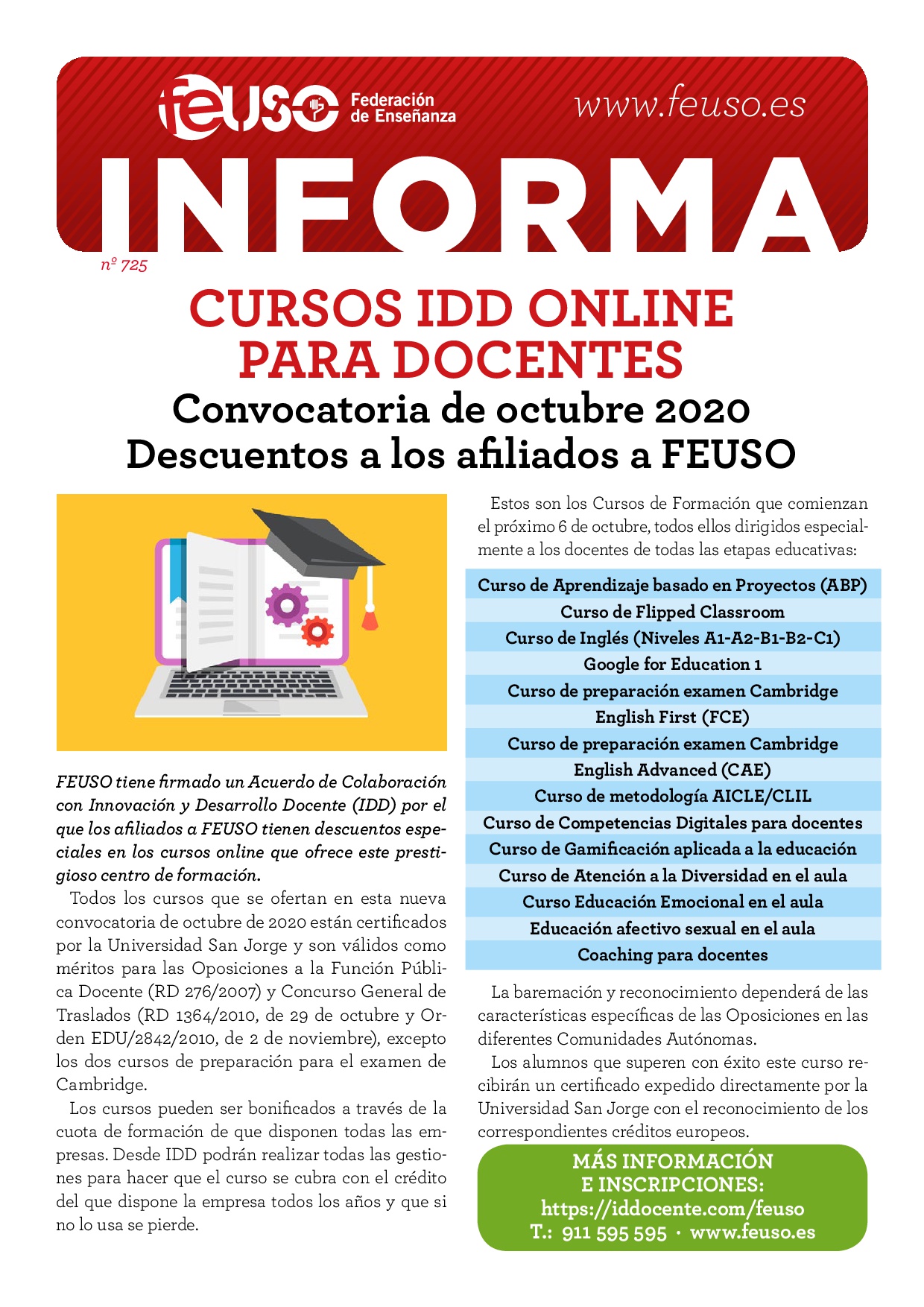 Convocatoria de octubre 2020 Descuentos a los afiliados a FEUSO