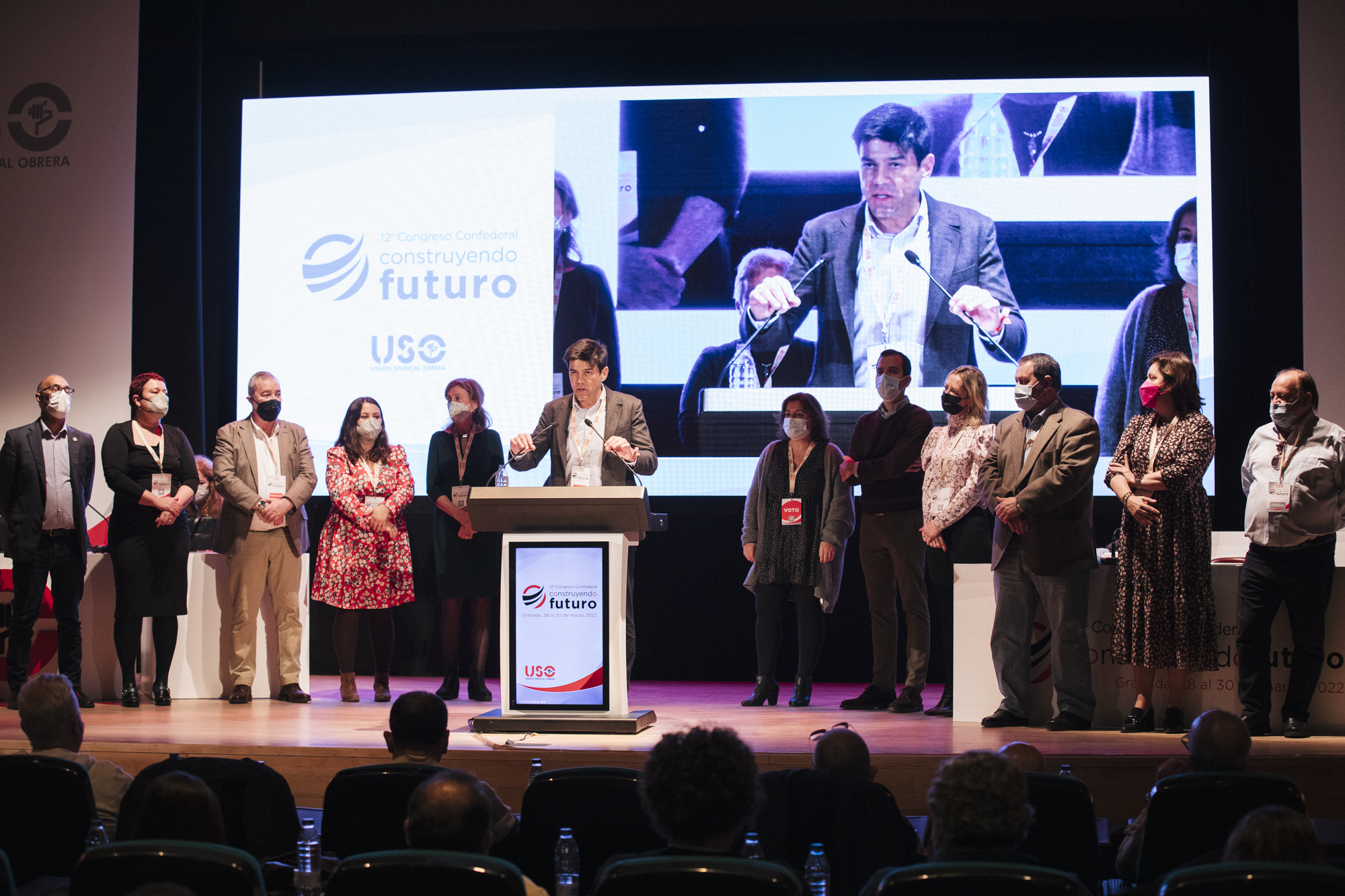 | Granada, 30 de marzo de 2022.- El 12º Congreso Confederal de USO, celebrado en Granada del 28 al 30 de marzo, ha reelegido como secretario general a Joaquín Pérez, con un respaldo del 100 % de los delegados.
