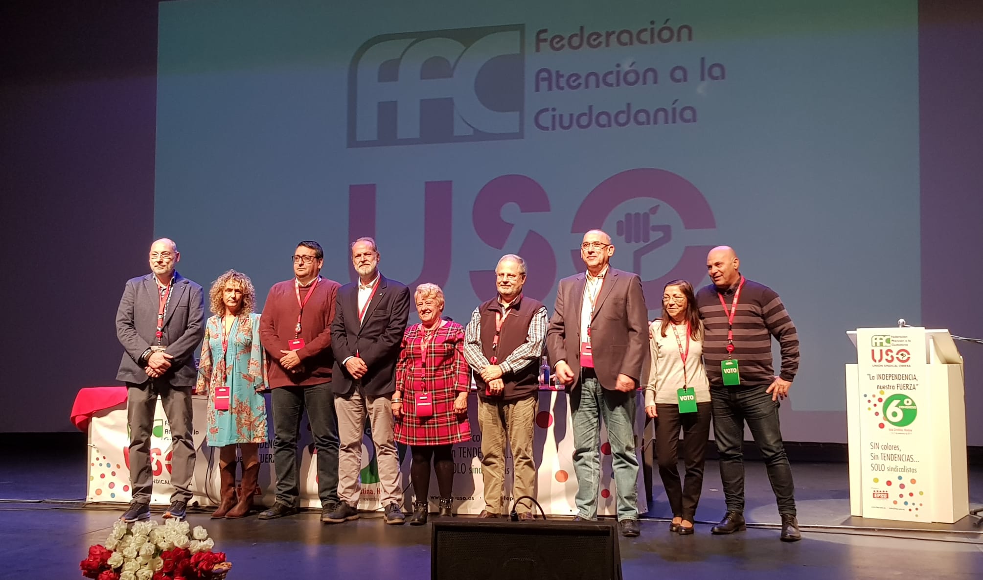 Huelva, 9 de noviembre de 2019.- La Federación de Empleados Públicos de USO, que durante su 6º Congreso ha votado el cambio de nombre a Federación de Atención a la Ciudadanía, comienza nueva etapa con textos renovados y adaptados a las nuevas realidades a las que se enfrentan los trabajadores de los servicios públicos. Luis Deleito ha sido reelegido como secretario general de FAC-USO, afrontando su quinto mandato con un equipo conformado por Sergio Romero como secretario de Organización; Leonardo Barreda como secretario de Asesoría Jurídica y Sindical; Lourdes Pedrazuela como secretaria de Formación y Salud Laboral; Nuria Vizcay como secretaria de Administración y Programas; y José Joaquín Castro como secretario de Desarrollo Sindical.