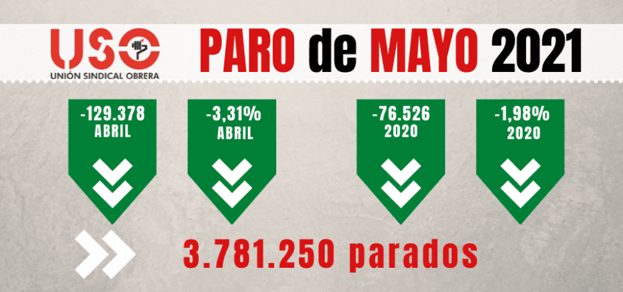 2 de junio de 2021- Luces y sombras al conocer los datos del paro de mayo, que registra la mayor bajada de personas desempleadas desde que hay registros. Una buena noticia que alivia la situación de casi 130.000 hogares, “pero que es un efecto rebote del fin de las medidas más restrictivas y de la vuelta del turismo y la hostelería”, analiza Joaquín Pérez, secretario general de USO.