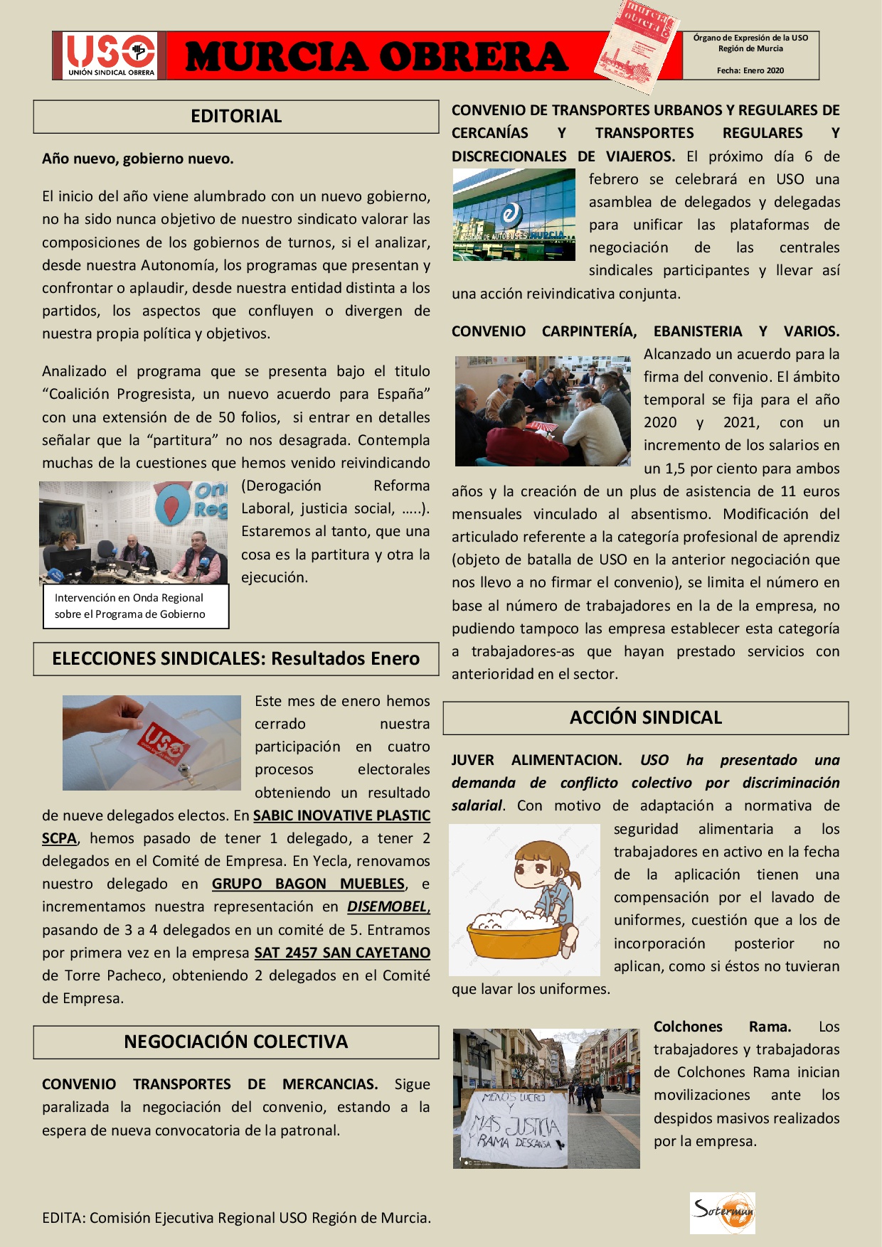 Toda la actualidad y activad de USO Región de Murcia durante el mes de enero de 2020.
