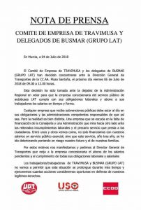 Los trabajadores/trabajadoras de TRAVIMUSA y BUSMAR (GRUPO LAT) no vamos a permitir que esta situación se prolongue durante más tiempo y ejerceremos cuantas acciones consideremos oportunas en defensa de nuestros legítimos derechos.