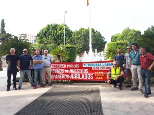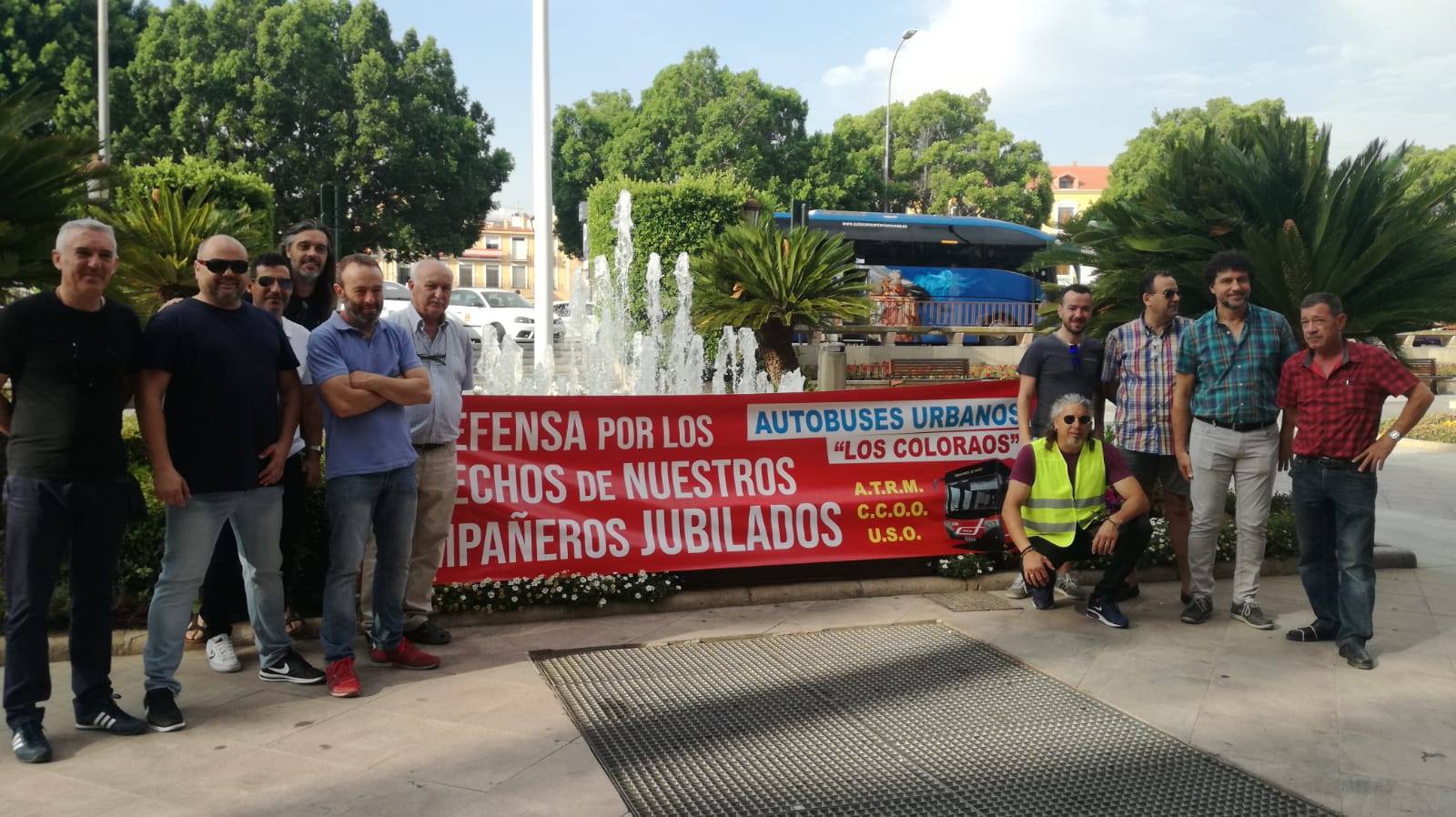 Siguen las concentraciones de los compañeros de los autobuses de los «coloraos» frente al ayuntamiento para protestar por la retirada de la tarjeta de transporte a sus compañeros jubilados. Gran ejemplo de solidaridad intergeneracional la de estos trabajadores que luchan hoy por sus mayores y sus derechos futuros a pesar de que no les afecta en este marco temporal a ellos mismos.