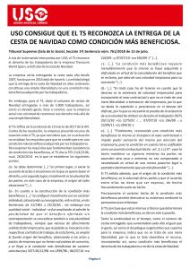 Os hacemos llegar el Boletín de Información Jurídica y Judicial Nº 25 en el que analizamos dos sentencias ganadas por USO en el Tribunal Supremo, en primer lugar la sentencia que reconoce el derecho de los trabajadores de Unísono a recibir el complemento de IT los 31 días y, en segundo lugar, el reconocimiento de la entrega de la cesta de Navidad como condición más beneficiosa para los trabajadores de Transcom.