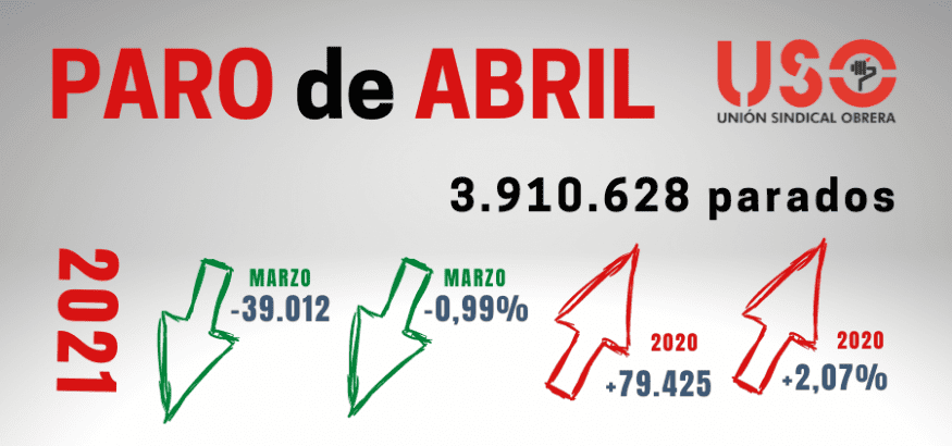 | Madrid, 5 de mayo de 2021.- Abril ha dado un leve respiro a los datos del paro, que baja con respecto a marzo, pero que sigue subiendo con respecto al peor mes de la pandemia: abril de 2020.